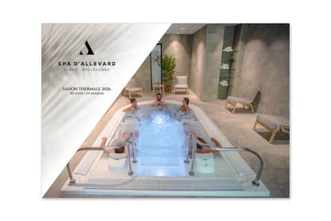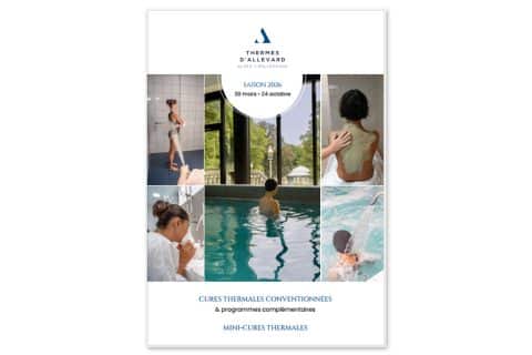 Allevard-les-Bains Allevard-les-BainsCures Allevard-les-BainsMieux-être Allevard-les-BainsStation Allevard-les-Bains PRÉSENTATION Au cœur des Alpes, entre Grenoble et Chambéry, loin de toute pollution urbaine ou industrielle, se trouvent les Thermes d’Allevard-les-Bains. Une situation rare et privilégiée qui vous permet, à 475 mètres d’altitude, de profiter sans gêne d’un climat de haute montagne généré par la proximité de la chaîne de Belledonne qui culmine à 3000 mètres. Ici, vous combinerez avec bonheur le traitement d’une cure d’air et d’une cure thermale, au sein d’un parc enchanteur. ORIENTATIONS THÉRAPEUTIQUES DATES OUVERTURE 2026 : Cures thermales médicales : 30 mars au 24 octobre 2026 Spa thermal & Espace bien-être : 30 mars au 24 octobre 2026 Je réserve ma CURE… RDV au SPA… HEBERGEMENTS… CONTACT ET RÉSERVATIONS Par courrierThermes Allevard-les-Bains6 Avenue des Bains38580 Allevard-les-BainsPar téléphone04 76 97 56 22 Par mailcontact@thermes-allevard.com Sur le site internet :www.thermes-allevard.com OFFICE DE TOURISME – HEBERGEMENTS : Par téléphone04 76 45 10 11Place de la Résistance38580 Allevard-les-BainsCentrale de réservation – Hébergements :04 76 45 89 92 http://www.allevard-les-bains.com/les-hebergements.html BROCHURES 2026 Allevard Les Bains – Cures thermales 2026 Allevard Les Bains – Spa thermal 2026 Allevard Les Bains – Réservation Cure thermale 2026 Application RespiRelax© – Cohérence cardiaque L’application RespiRelax+ fait peau neuve ! Toujours aussi simple à utiliser et encore plus pratique au quotidien grâce à une nouvelle interface immersive et intuitive ! Depuis sa création en 2012 par les Thermes d’Allevard, l’application RespiRelax+ vous permet de retrouver calme et détente en quelques minutes seulement et d’atteindre un état dit de « cohérence cardiaque ». Elle compte à ce jour plus de 2 millions de téléchargements. Rendez-vous sur l’application RespiRelax+ disponible sur App Store et Google Play, et respirez au rythme de la bulle ! RespiRelax+ est une application gratuite. Cures Allevard-les-Bains SEJOUR Découverte Bien-être . 2 journées . Allevard . 170 € Mieux-être Allevard-les-Bains VISITE EN IMAGES…