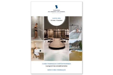 Brides-les-Bains Brides-les-BainsCures Brides-les-BainsMieux-être Brides-les-BainsStation Brides-les-Bains PRÉSENTATION En Savoie, dans un écrin de verdure, aux portes de la Vanoise et au pied des 3 Vallées (Méribel et Courchevel), ce « Village pour Maigrir® », fort d’une expérience thermale de plus de 170 ans, est la première station thermale en France spécialisée pour maigrir durablement et soigner ses rhumatismes. Construit autour de ses sources « amincissantes » et antidouleur, Brides-les-Bains est la station par excellence où l’on vient apprendre à maigrir, à soulager ses rhumatismes, à retrouver l’équilibre, grâce à une approche globale et personnalisée. Grâce à ses infrastructures modernes, les Thermes de Brides-les-Bains réunissent l’essentiel des soins et activités d’amaigrissement et de rhumatologie sur un seul et même lieu. ORIENTATIONS THÉRAPEUTIQUES : Je réserve ma CURE… DATES OUVERTURE 2026 : Cures thermales : 23 mars au 31 octobre 2026 Le Grand Spa Thermal® : 23 mars au 31 octobre 2026 Le Grand Spa Thermal® : Fermeture temporairement cet hiver pour travaux RDV au SPA… CONTACT ET RÉSERVATIONS Par courrierThermes de Brides-les-Bains / Le Grand Spa Thermal2 Rue des Thermes73570 Brides-les-Bains Par téléphoneThermes : 04 79 55 23 44Spa : 04 79 55 26 70 Par mailThermes : thermes@thermes-brideslesbains.frSpa : contact@legrandspathermal.com Sur le site internetwww.thermes-brideslesbains.fr BROCHURES 2026 Brides les Bains – Cures thermales 2026 Brides-les-Bains – Réservation cure thermale 2026 Brides les Bains – Grand Spa Thermal Séjours 2026 EXPLOREZ BRIDES-LES-BAINS… Consultez la Carte interactive : Découvrez toutes les activités de votre destination thermale et touristique, et organisez votre séjour simplement. Vivez une expérience unique en conjuguant votre séjour thermal aux multiples activités physiques, sensorielles, culturelles qu’offre l’environnement naturel du territoire de Brides-les-Bains et de la Savoie. Cures Brides-les-Bains SEJOUR Parenthèse 3 jours . Brides . 360 € Mieux-être Brides-les-Bains