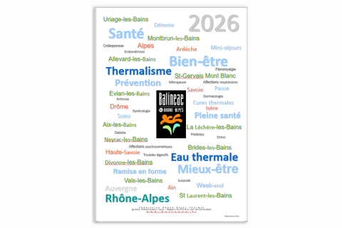 Espace presse Bonjour, Retrouvez toute l’information Balineae by Rhône-Alpes Thermal, des 15 destinations thermales de Rhône-Alpes. Nous mettons à votre disposition une sélection de photos libres de droit, à la demande : thèmes santé, mieux-être thermal, tourisme stations. Dossier presse Balineae 2026 Brochure Balineae 2026 – 15 destinations thermales Brochures Thermes & Spas Thermaux 2026 Calendrier Ouvertures 2026 – Thermes & Spas thermaux Concept Balineae by Rhône-Alpes, destinations Mieux-être pour vivre mieux Suivez l’actualité de Balineae… Facebook Instagram INFORMATIONS… Concept – Balineae by Rhône-Alpes Thermal Dossier Presse 2026 Balineae by Rhône-Alpes Thermal 2026 Stations Thermales Pleine Santé – 2026 Brochures 2026 Toutes les Brochures 2026 à votre disposition pour préparer votre séjour thermal en Rhône-Alpes. Calendrier Saison thermale 2026 Dates ouverture thermes & Spa thermaux 2026. Préparez votre prochain séjour thermal en Rhône-Alpes… Cures 18 jours, courts séjours, journée découverte thermale… Balineae by Rhône-Alpes Thermal. Contact presse : Sophie Fournier Vonderscher – Mail : fournier.sophie@balineae.fr – Téléphone : 04 79 35 76 92