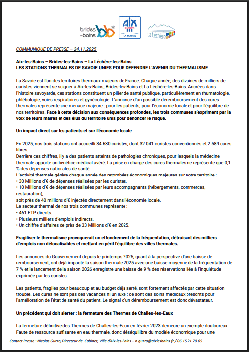 Accueil » Actualités » LES STATIONS DE SAVOIE unies pour l’avenir du Thermalisme